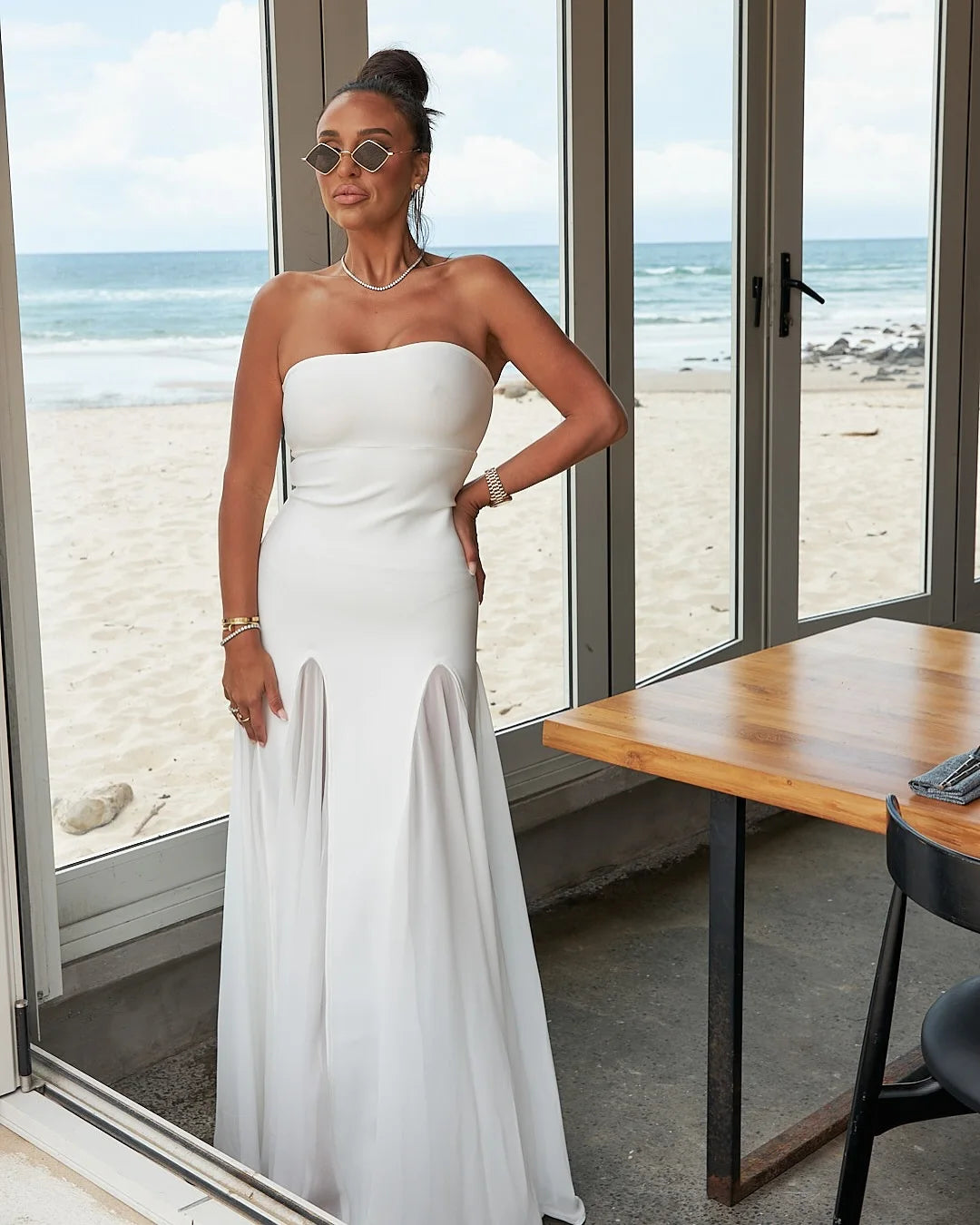White Black Women Sexy Strapless Off the Shoulder Bodycon Long Mesh Dress Celebrate Evening Party Birthday Wedding Dress
