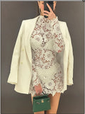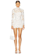 White Color Women Long Sleeve Sexy Lace Hollow Out Bodycon Mini Dress Nightclub Party Celebrate Birthday Fashion Wear