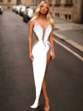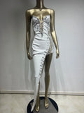 White Pink Blue Color Women Sexy Strapless Shinning Crystal Bodycon Bandage Maxi Dress Celebrate Evening Party Outfit Vestido