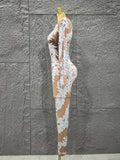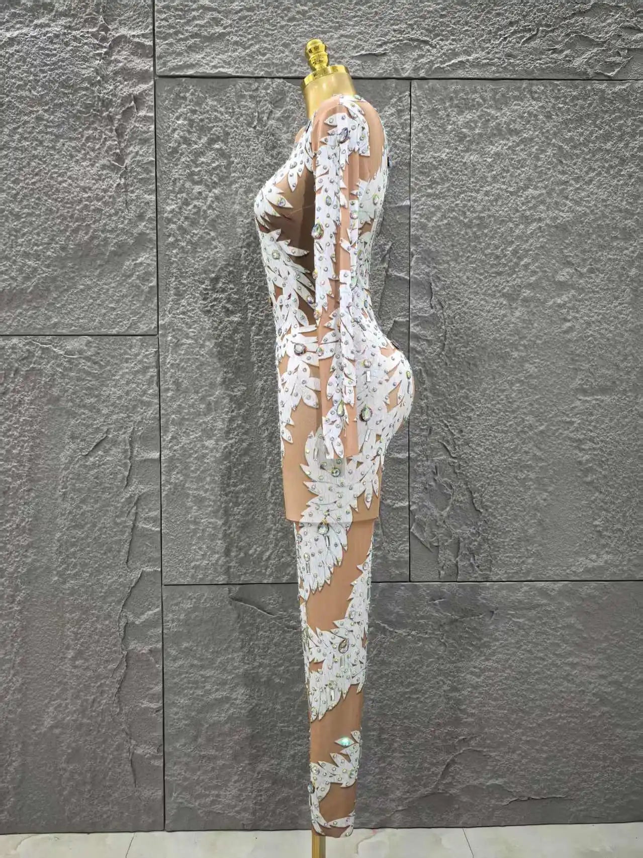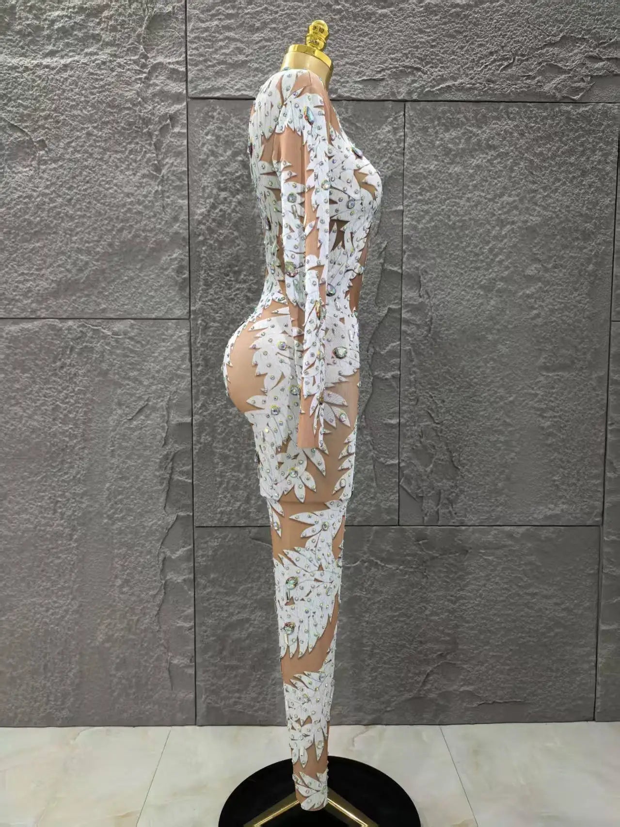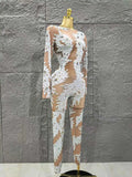 Wholesale Women Sexy Long Sleeve Shinning Rhinestones Bodycon Jumpsuit Celebrate Nightclub Party Performance Costume Stage Wear