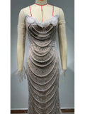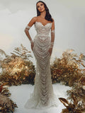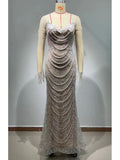 Women Luxury Sexy Strapless Backless Pearl Sequins Maxi Long Gowns Dress 2024 Elegant Evening Party Club Dress Vestido