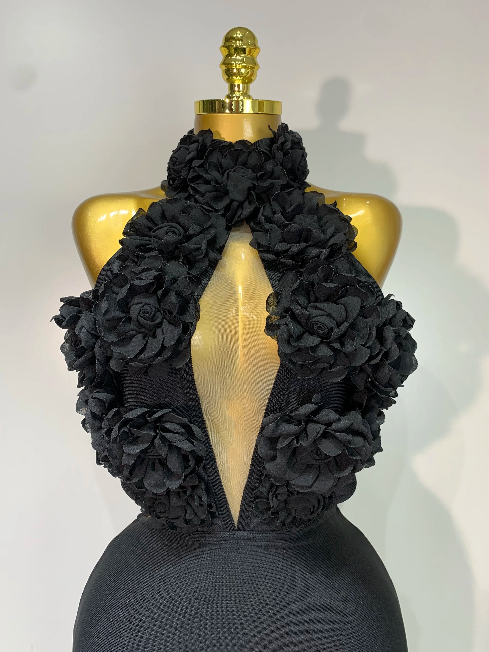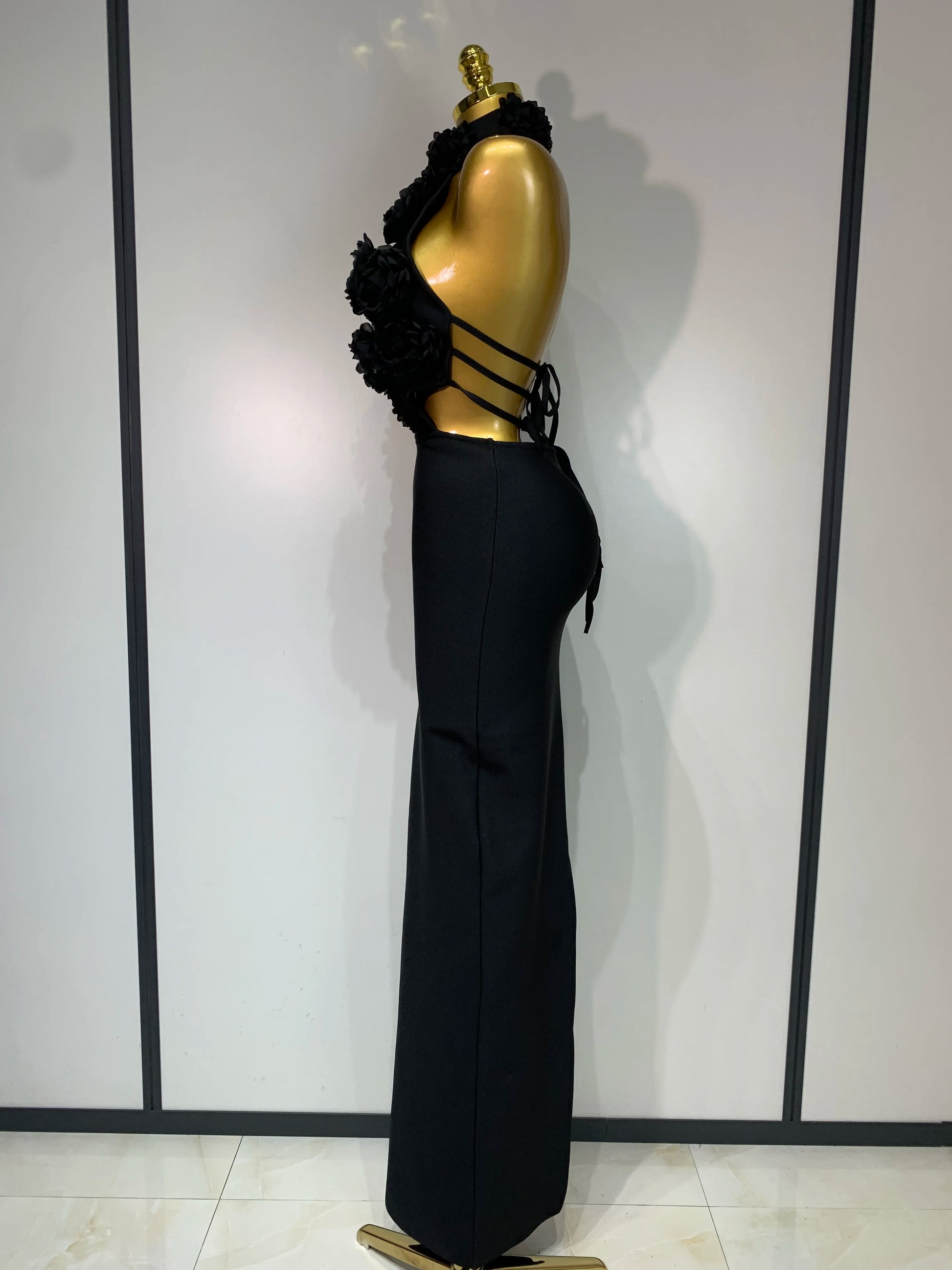 Women Sexy Halter Hollow Out Flowers Bodycon Bandage Dress Red Backless Celebirty Elegant Party Luxury Birthday Wedding Dresses