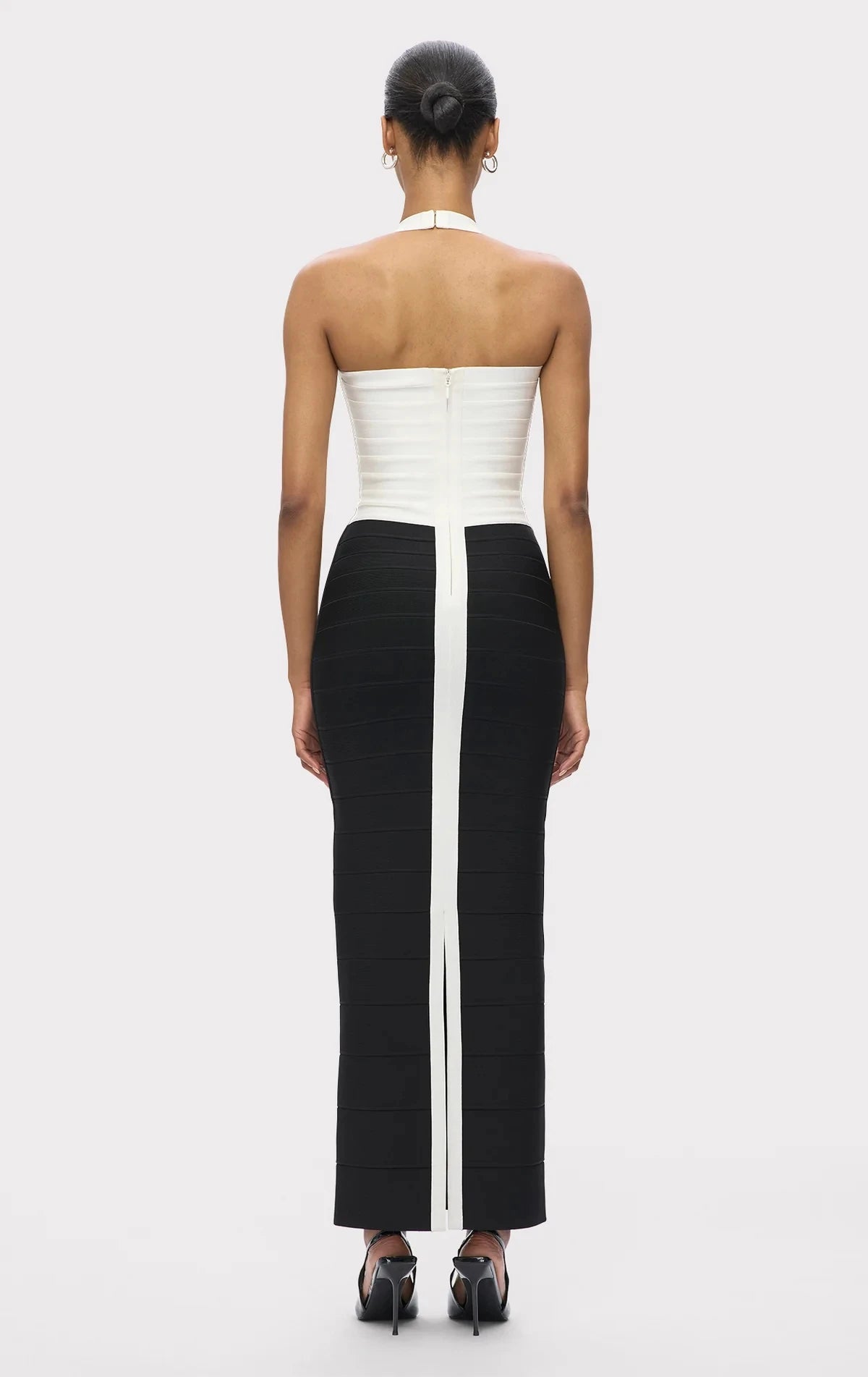 Women Sexy Halter Whiter Black Patchwork Bodycon Bandage Dress Celebrity Elegant Evening Party Club Luxury Birthday Dresses