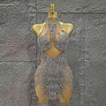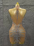 Women Sleeveless Sexy Off the Shoulder Shinning Crystal Bodycon Mini Dress Mesh See Through Celebrate Nightclub Party Stage Wear