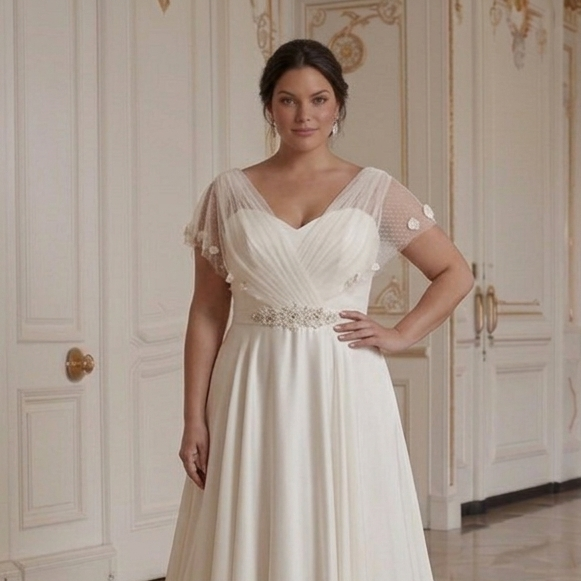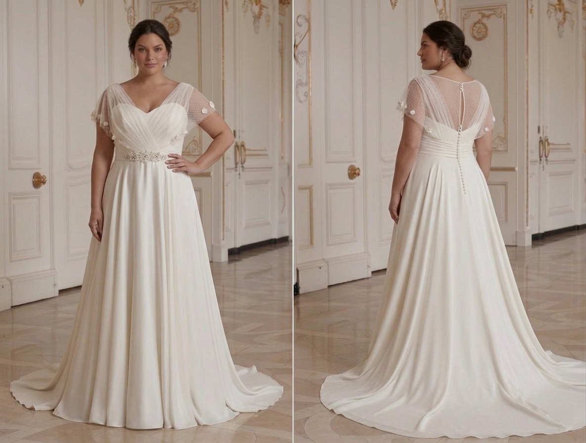 Vestido de Noiva Elegante para Noiva Curvilínea Design Suave e Feminino