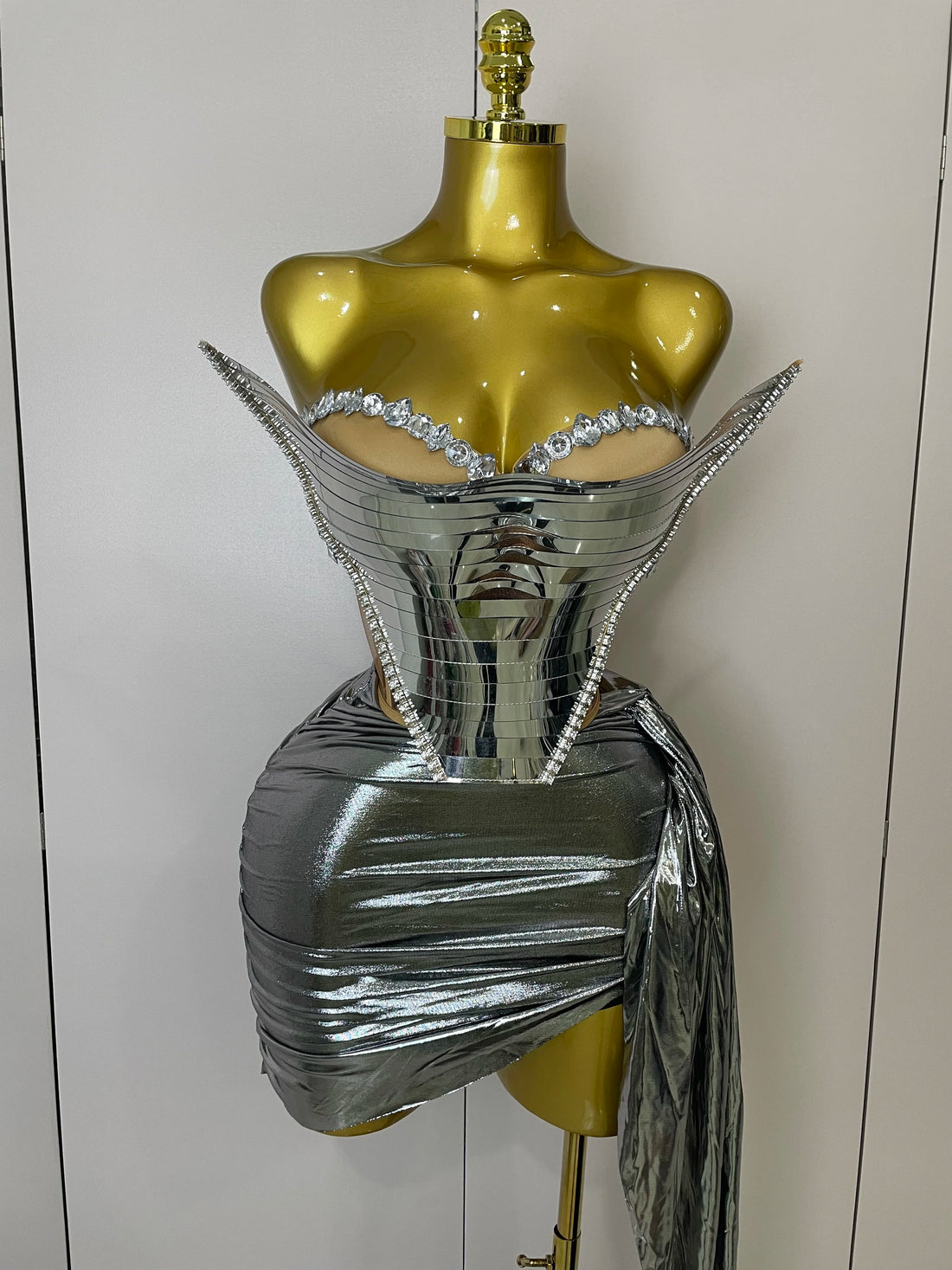 Sexy Luxury Shiny Diamond Sequins Cocktail Dress 2Pcs Set 2025New Women Evening Celebrate Birthday Party Nightclub Stage costume