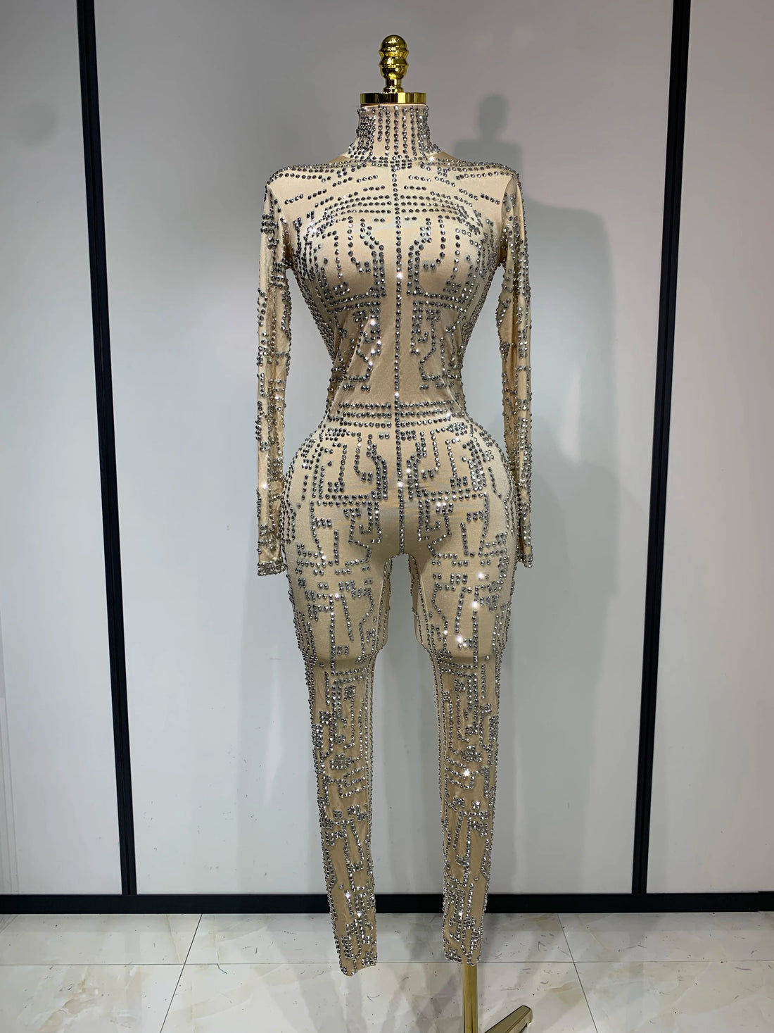 Shining Rhinestones Jumpsuits for Women Sexy Stretch Dance Jumpsuit Birthday Party Nightclub Stage Wear Drag Queen Costumes