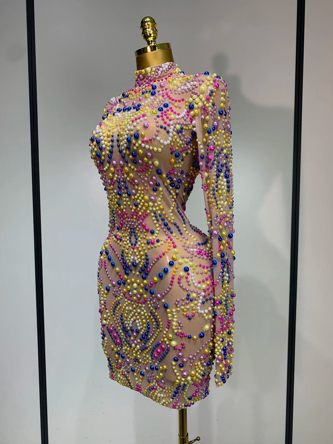 Women Sexy Transparent Mesh Stage Performance Costume Dancer Singer Nightclub Elagant Evening Party Luxury Birthday Dress