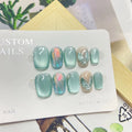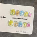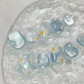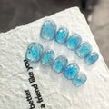 10pcs Handmade Press on Nail Ice Blue Ocean Star Ice-transparent Texture False Nail for Women&Girl Short Oval Wearable Nail