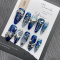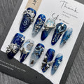 10Pcs Handmade Press on Nails Simple And Elegant Royal Blue Depth Gentle And Graceful Stick-on Nail Art Retro