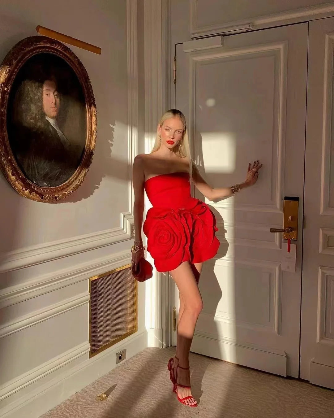 Spring Women Sexy Strapless Big Flowers Bodycon Mini Dress Cute Celebrity Birthday Party Girls' Homecoming Dress