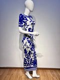 2024 Summer Women's Fashion Printed Bandage Dress Sexy Short sleeved Round Neck Chinese Style Long Dress Elegant Party Dress