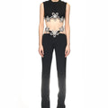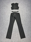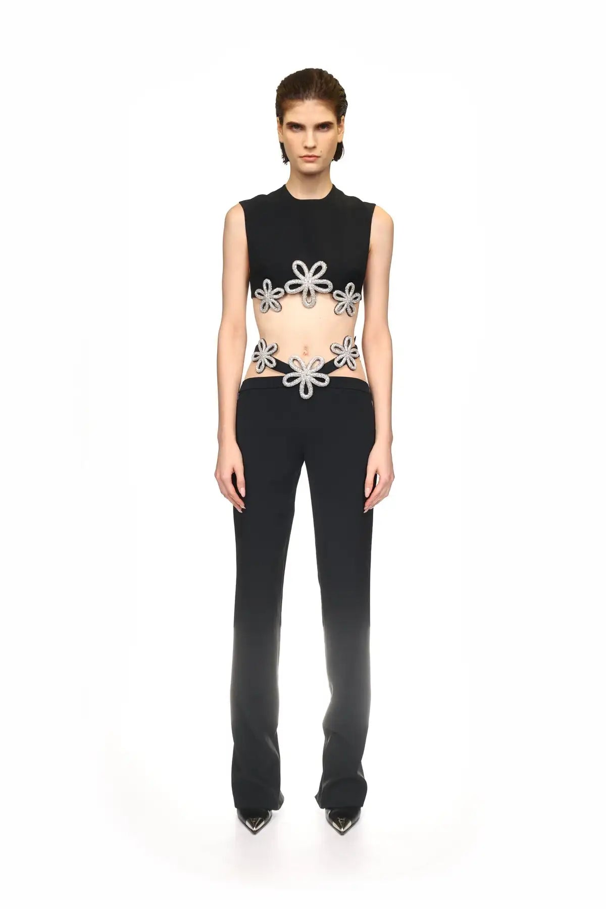 2024 Summer Women's Spicy Girl Set Black Sleeveless Tank Top Flower Low Waist Elastic Tight Pants Fashionable Heavy Industry Two