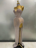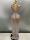 2025 Luxurious Full Rhinestones Mesh Transparent long dress Women Birthday Celebrate Evening Prom Dress party Club Stage Costume