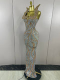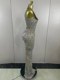 2025 Luxury Crystals Diamonds Slit elegant Sheath Fishtail Dress Women Sexy Evening Party Performance Photoshoot Stage Dress