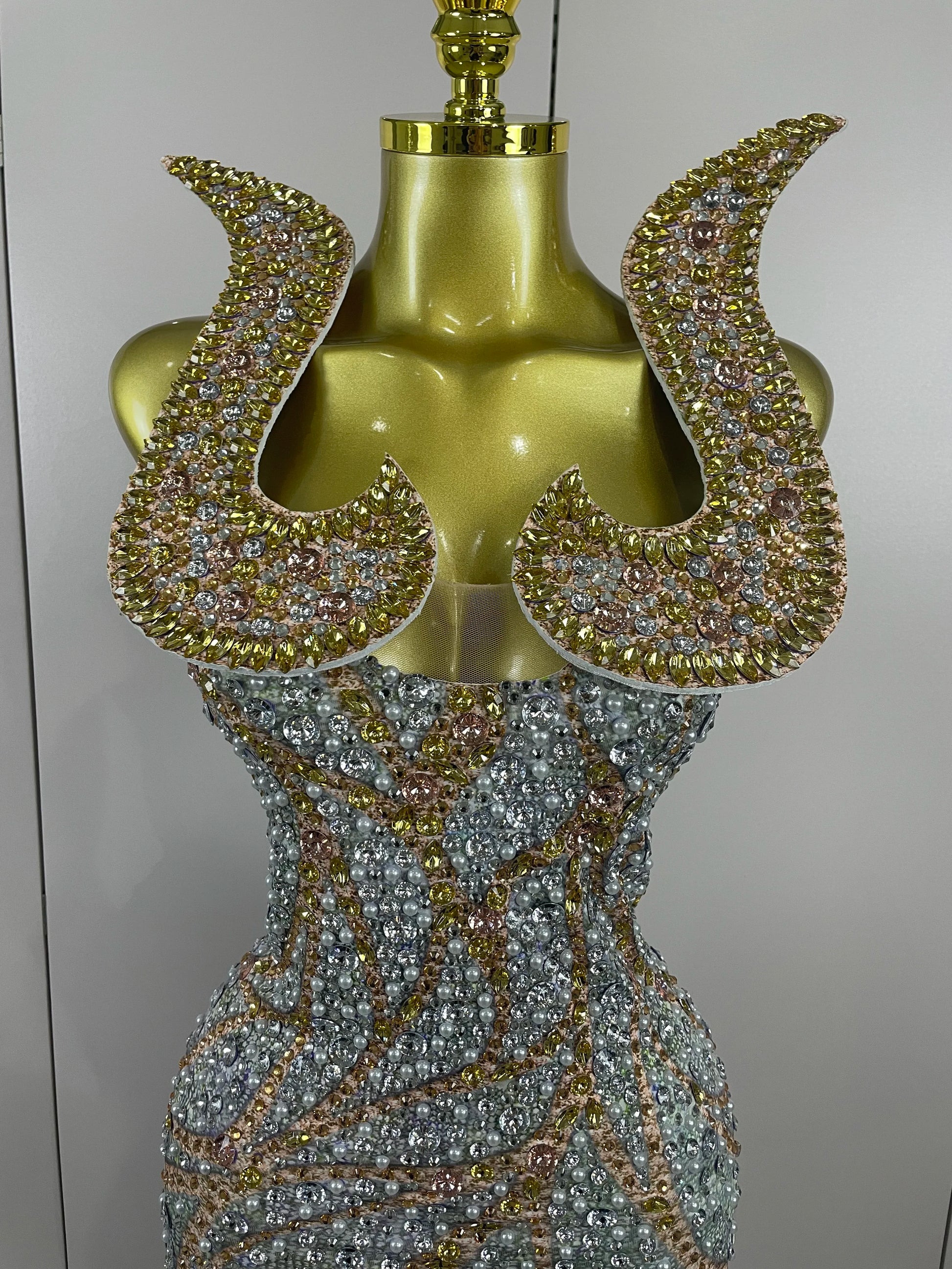 This bespoke, handmade dress is crafted with exceptional attention to detail using premium materials. Each stitch reflects the artistry and dedication of our skilled artisans, ensuring a timeless and elegant look. Designed to complement every season—Spring, Summer, Fall, and Winter—this dress is as versatile as it is beautiful.