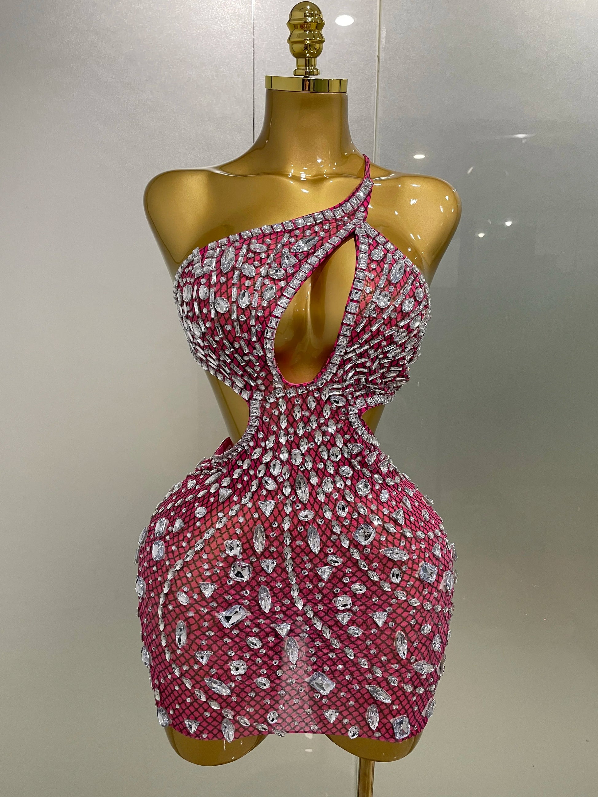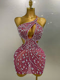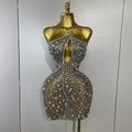 2025 Luxury Sexy Backless Hollow Out Sparkle Diamond Evening Prom Women Birthday Celebrate Stage Nightclub Outfit