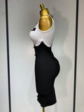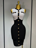 2025 New Arrivals Fashionable Women Bandage Golden Buttons White Black Patchwork Sleeveless Bodycon Elegant Party Dresses