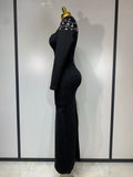 2025 New Luxury Birthday Dresses Diamond Tight Long Sleeve Square Neck Long Bandage Dress Women Wedding Evening Formal Gowns