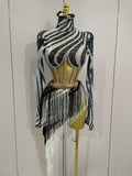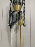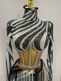 2025 New Shiny Diamond Sequin Tassels Sexy Mesh Long Sleeved Two Piece Set Women Evening Birthday paty Nightclub Stage Costume