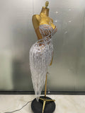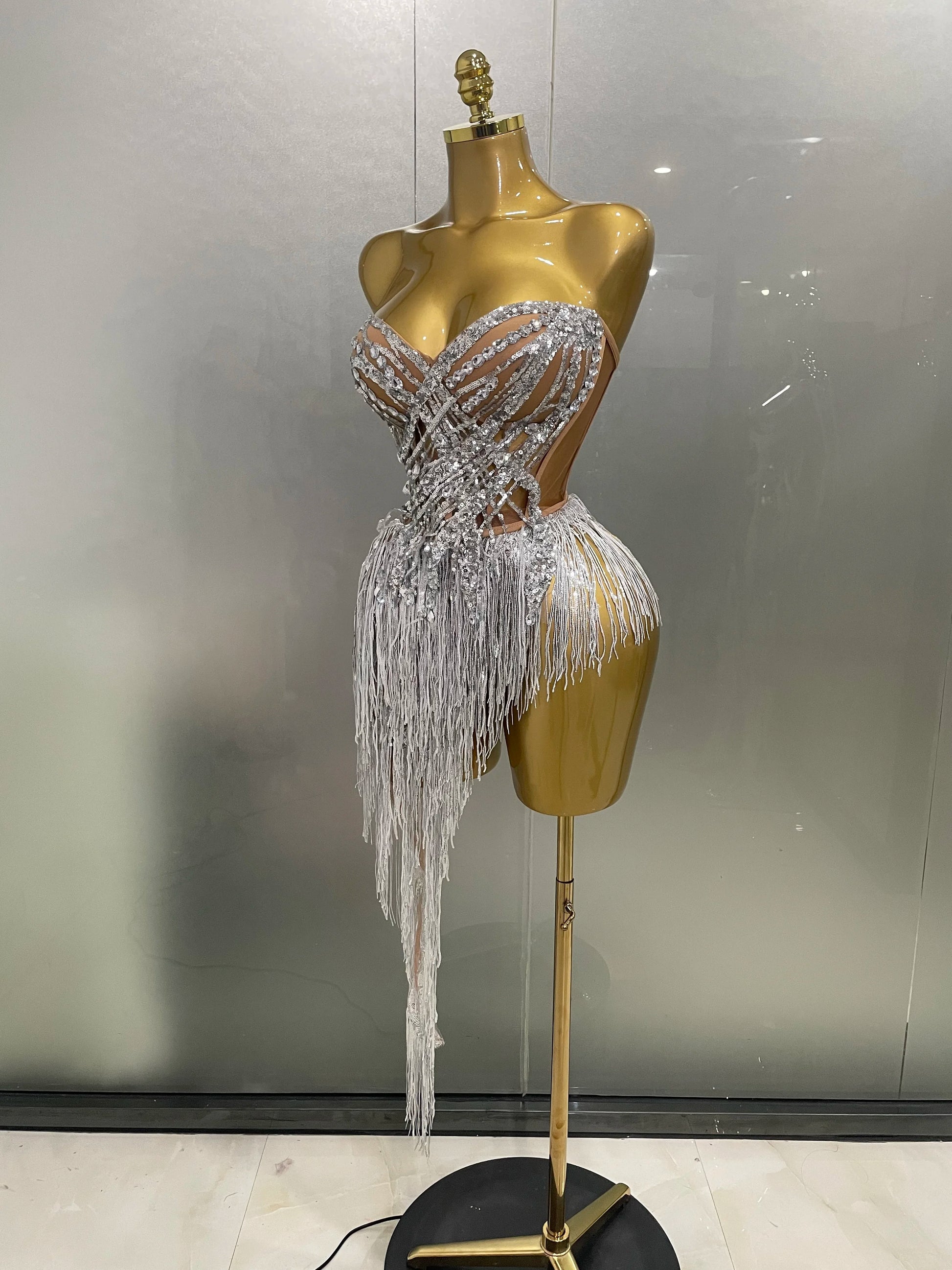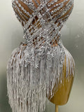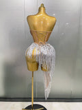 2025 New Sparkly Rhinestone Sequin Tassel Sexy Mini Skirt Two Pieces Set Women Birthday Celebrate Party Nightclub Stage Costume