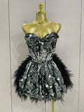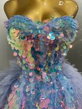 2025 New Stage Costume Women's Sparkly Sequin Mesh A Line Top Skirt 2 Pieces Set Nightclub Party Birthday Dress Photo Shoot Wear
