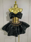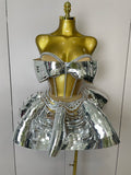 2025 Women Silver Sequins Rhinestone Sexy Backless Two Piece Set Birthday Party Club Fancy Outfit Stage Performance Costume