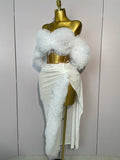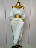 2025 Women White Sequins Top Short Skirt Two Pieces Set Sexy Celebrate Evening Prom Birthday Dress Nightclub Stage Outfit
