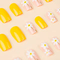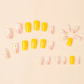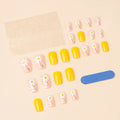 24 Pcs Square European Style Press On Nails Medium Shine Yellow Flower Fake Nails Reusable Cute False Nail For Women/Girls