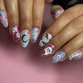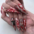 24Pc Halloween False Nails with Almond Head Designs Cute Clown Fake Nails French Full Cover Manicure Press on Nail Tips for Girl
