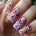 24pcs Flower Full Cover Nail with Pearl Design Mid-length Ballet False Nails Press on Square Fake Nail Tip Wearable Manicure Set