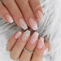 24Pcs Mid-length Fake Nails with Glue Wearable Glitter Press on Nail Detachable French Sweet Butterfly Acrylic Nail Manicure Tip