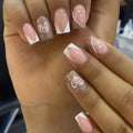 24pcs Mid-length French False Nails Leopard Print Gradient Design Fake Nail Ballet Datachable Press on Nails Finished Manicure