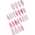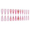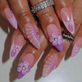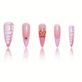 24pcs Pink French Press on Nails Spice Girl 3d Flowers Decor False Nails Wearable Reusable Crocodile Print Almond Fake Nail Tips