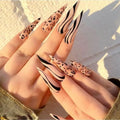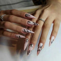 24Pcs Plum Blossom Stiletto False Nails Full Cover Manicure Tool Wearable Fake Nails Detachable Almond Nail Tips Press On Nails
