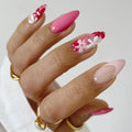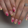 24pcs Red Flower Design Stick on Nail Art French Oval Fake Nail Finished Short Almond False Nails Datachable Press on Nails Tips