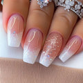 24Pcs Short False Nails with Shimmery Powder Ballet Nail Art Full Cover French Sheer Wearable Nail Manicure Tips for Girls Daily