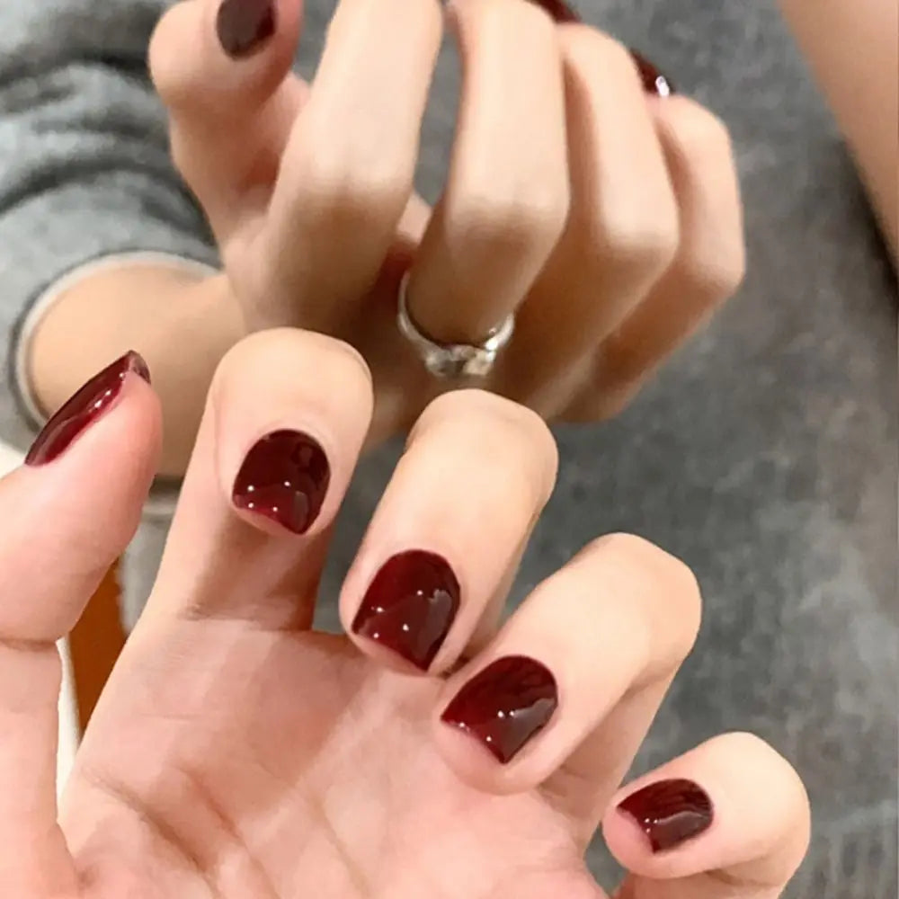 24pcs Short Round False Nails French Blue Sparkling Pearl White Wavy Love Heart Full Cover Detachable Press On Nail Tips