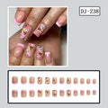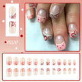 24pcs y2k Black French Press on Nails Short Square Pink Heart Fake Nails Full Cover Wearable Sweet Valentine's Day False Nails