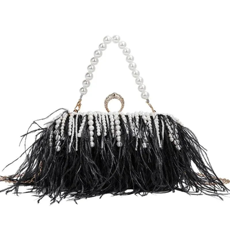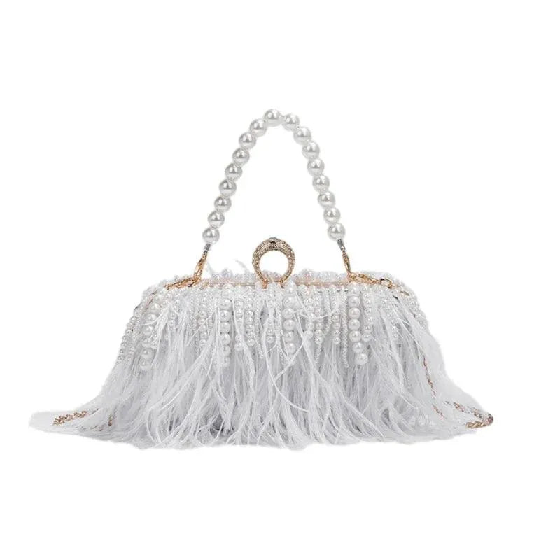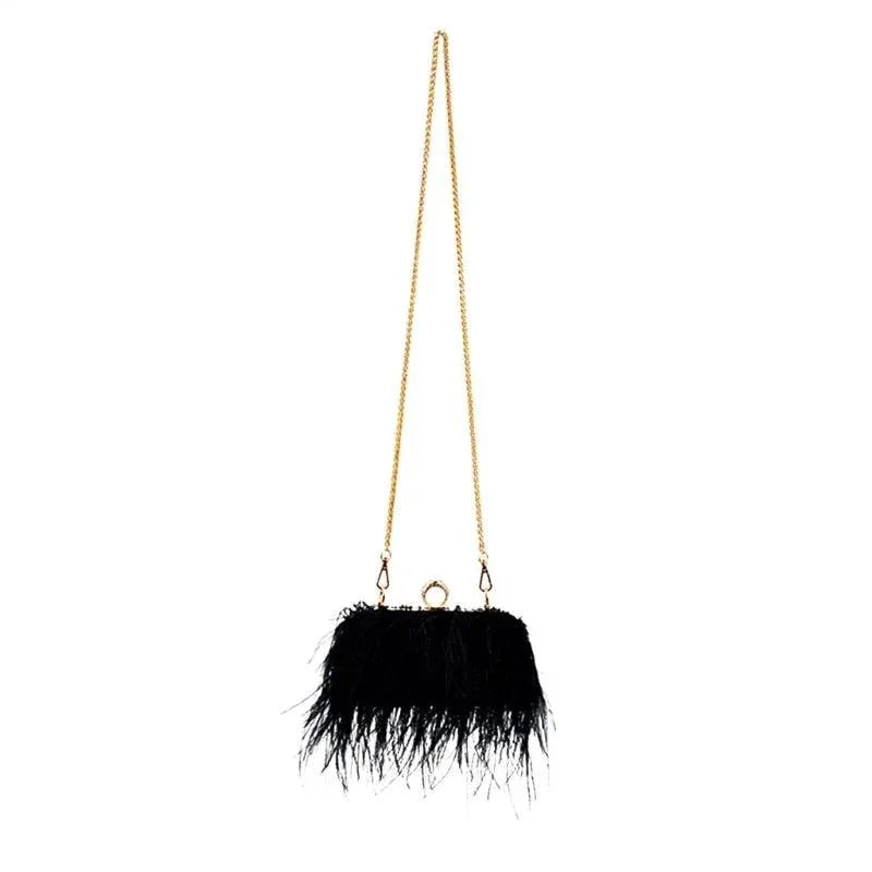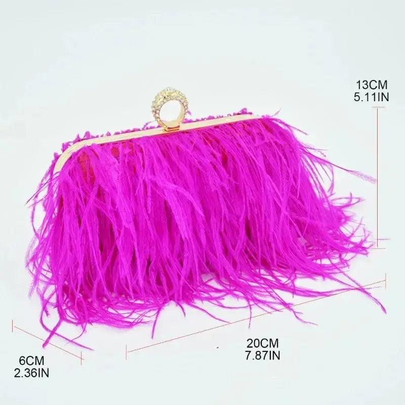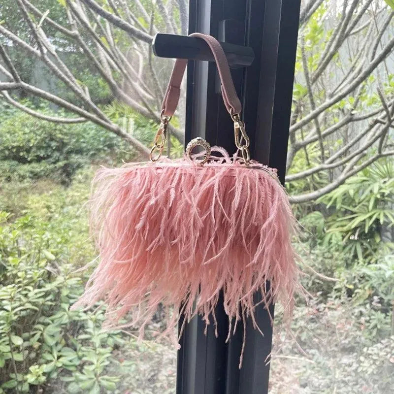 Bolsa de mão de penas de avestruz de luxo para mulheres, bolsa de mão para banquete, casamento, bolsa feminina elegante para festa, bolsa de ombro transversal