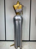 Celebrate Luxury Birthday Stage Show Wear Sparkling Rhinestones Two Pieces Set Sleelveless Evening Party Dresses Club Outfit