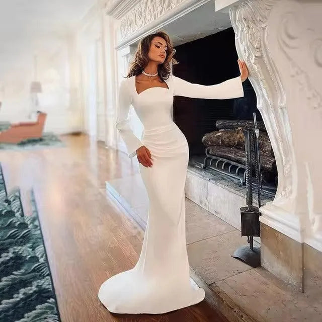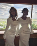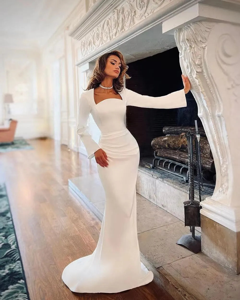 Vestidos de noiva civil sereia manga longa cauda destacável vestido de noiva boho personalizado sob medida elegante robe de mariee