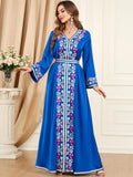 Étnico Kuwaitiano Mulheres Jalabiyat Abaya Para Emirados Árabes Unidos Dubai Feminino Sólido Bordado Cinto Robe Ramadan Muçulmano Caftan Vestido