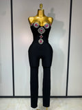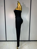 Fashion Celebrate Sparkly Rhinestone Women Sexy Strapless Bodycon Bandage Jumpsuit Runway Nightclub Party Luxury Birthday Outfit