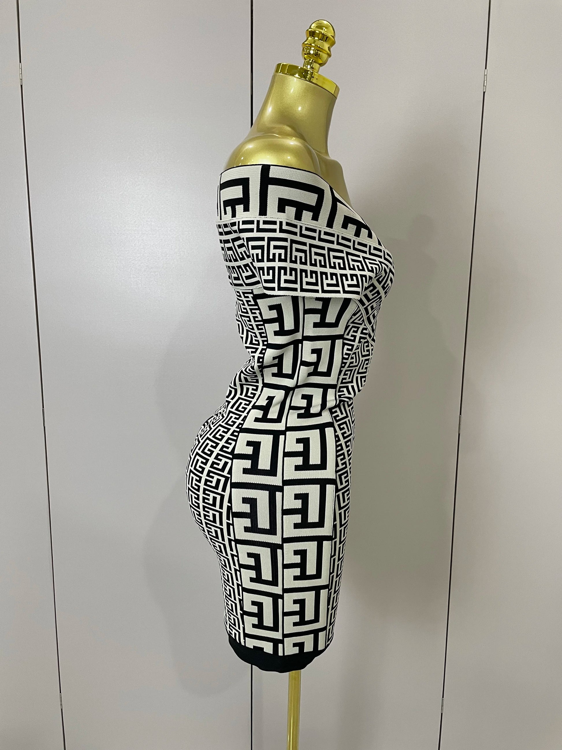 2025 Women Sexy Jacquard Slash Neck Off Shoulder Bodycon Mini Bandage Dress Elegant Evening Birthday Party Dress