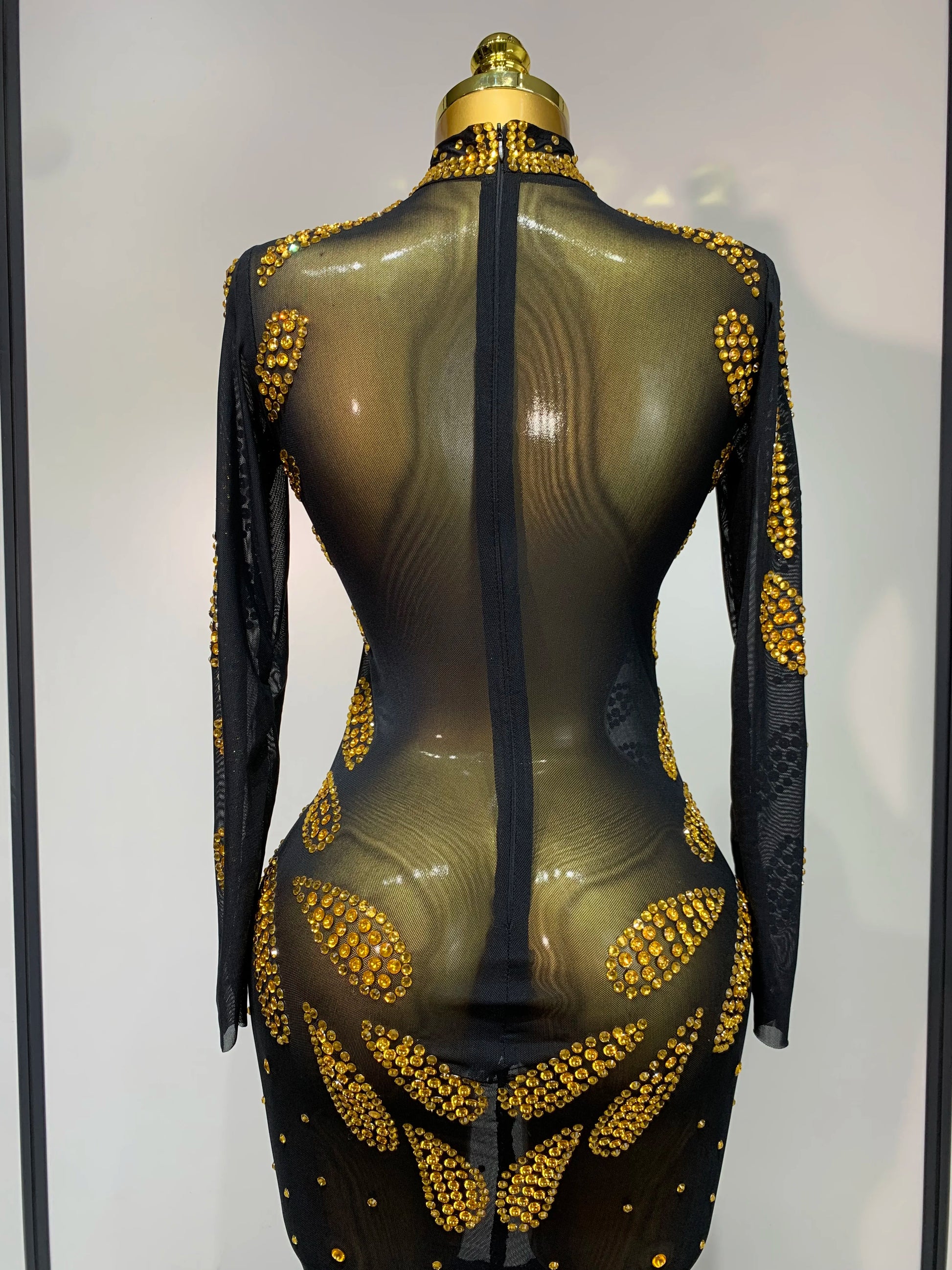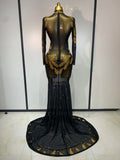 Stage Perform Dress Sexy Mesh Transparent Maxi Long Dress Nightclub Outfit Singer Dance Costume Elegant Party Dress