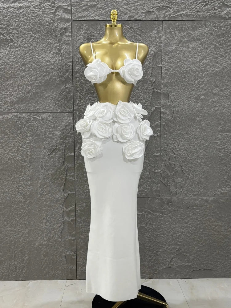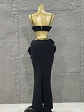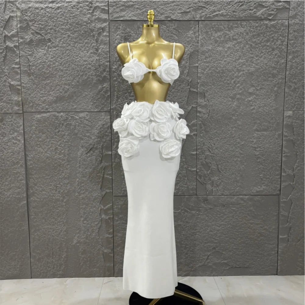 Women Sexy Strap Florlas 2 Pieces Bodycon Long Bandage Dress Nightclub Party Bar Singer Celebrate Birthday Outfit