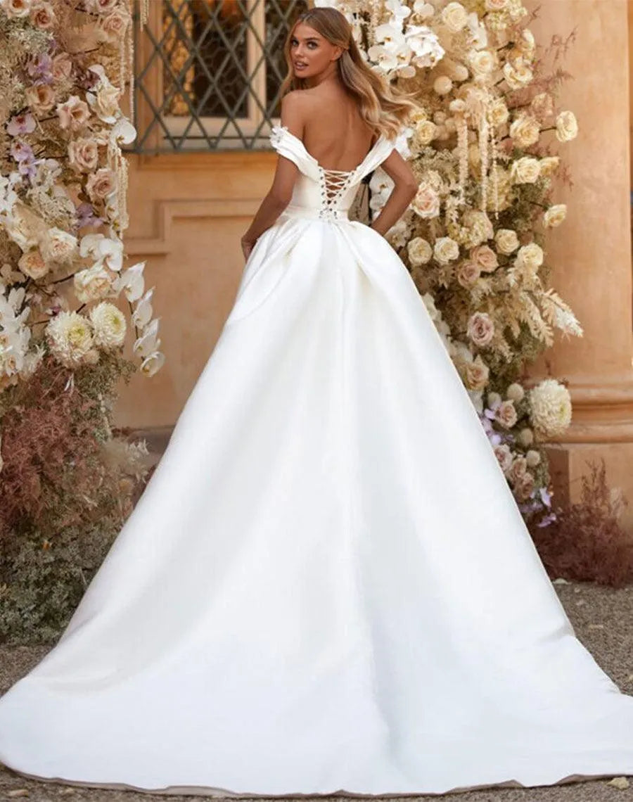 Vestidos de noiva sereia marfim cauda destacável ombro de fora flores 3D vestido de noiva cetim saia vestidos de noiva plus size