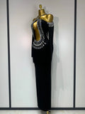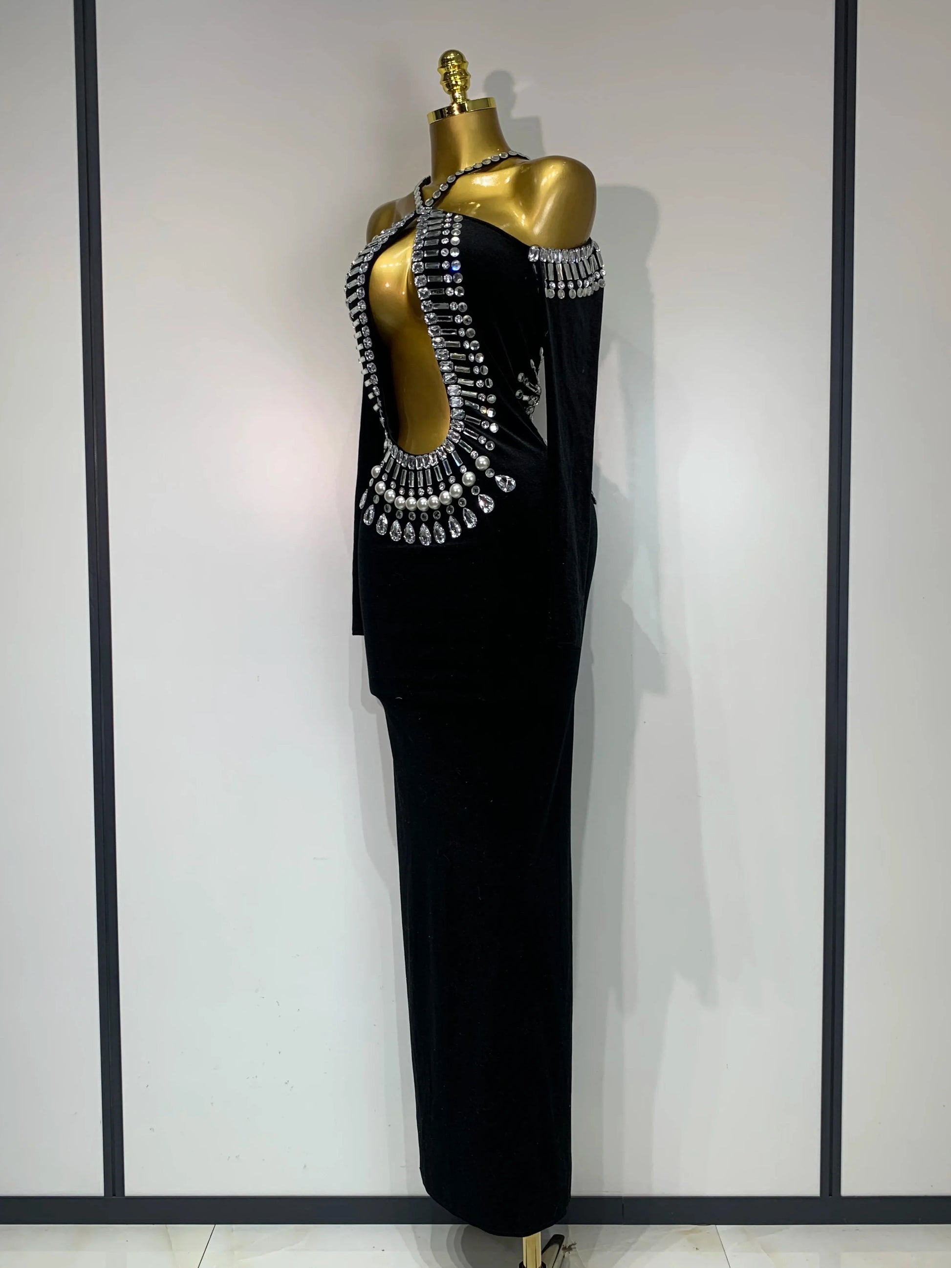Luxury Birthday Dress Sexy Black Velvet Hollow Out Bodycon Dress Halter Evening Dress Drag Queen Nightclub Wedding Dress