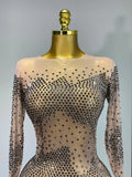 Luxury Birthday Rhinestones Half Sleeve Transparent Mini Dress Women 2025 Sexy Mesh Stretch Performance Celebrity Stage Wear
